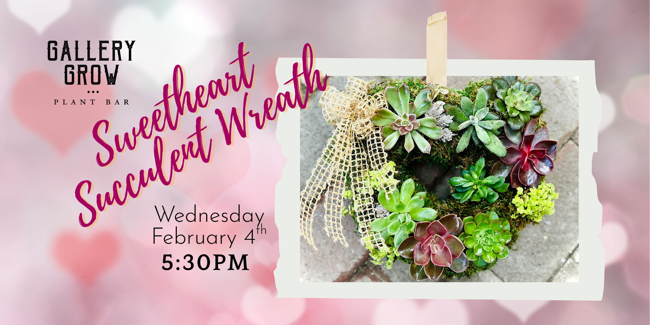 Unwind midweek with our Sweetheart Succulent Wreath Workshop on Wednesday, February 4 at 5:30pm. This intimate, BYOB happy hour includes everything you need to create a Valentine-inspired living wreath. Partners are welcome to create one together—just note it when registering. $65 per person.